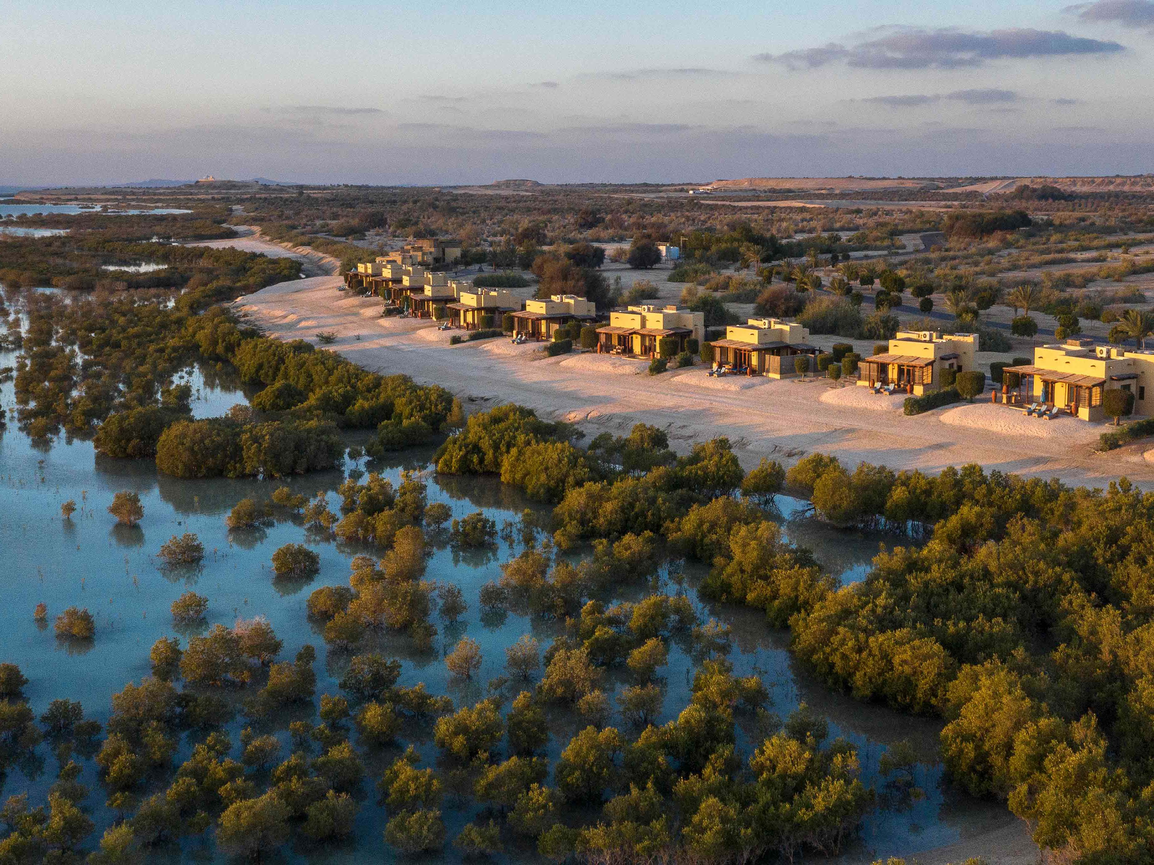 Anantara Al Yamm Villa Resort offers an exclusive luxury experience nestled on the pristine shores of Sir Bani Yas Island, Abu Dhabi. This idyllic resort combines contemporary design with traditional Arabian influences, creating a serene retreat amidst the island's natural beauty. The resort features a collection of elegant villas, each thoughtfully designed with private pools, spacious terraces, and luxurious interiors that offer breathtaking views of the surrounding desert and mangroves. The tranquil setting provides a perfect escape for those seeking privacy and relaxation.